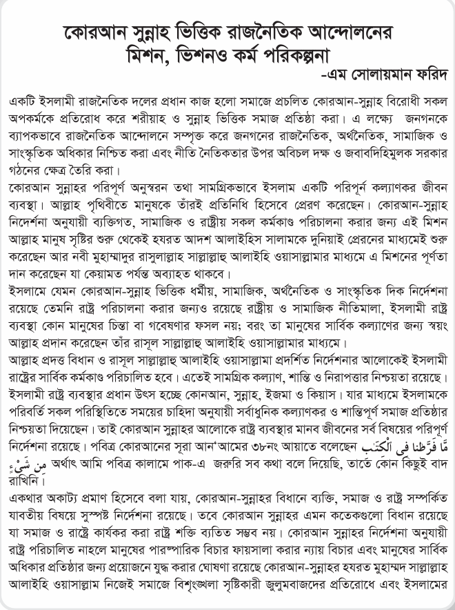 সুন্নী মতাদর্শভিত্তিক ইসলামী সমাজ ও রাষ্ট্র প্রতিষ্ঠা